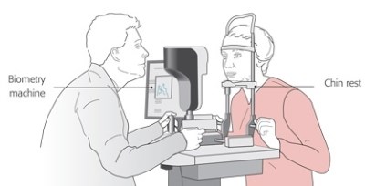 Before the operation a measurement has to be taken of the shape of the eye with a machine called an IOL master. This is a very accurate, totally painless assessment of the eye. It just requires you to look at a red spot of light and measures the curvature of the cornea at the front of the eye and the length of the eye from front to back. Each eye is slightly different in shape but with these two measurements the machine calculates an accurate strength of focus for the new lens implant (called an intra-ocular lens or IOL) for your particular eye.
